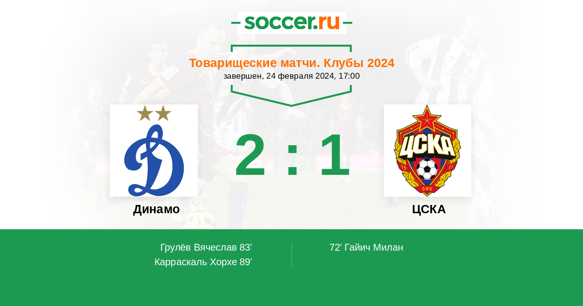 Протокол матча Динамо против ЦСКА