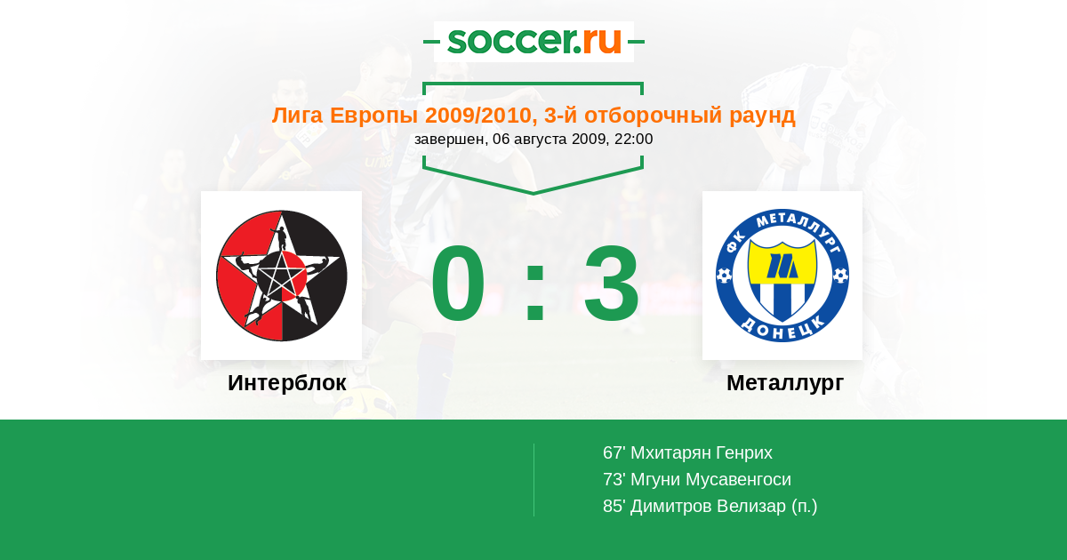 Протокол матча Интерблок против Металлург