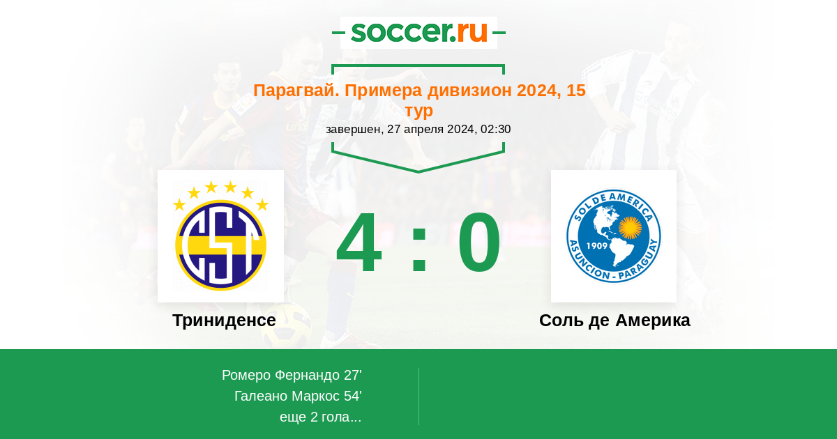 Протокол матча Триниденсе против Соль де Америка