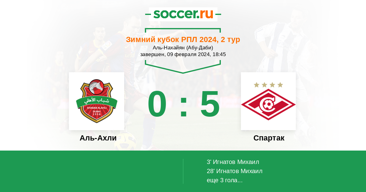Протокол матча Аль-Ахли против Спартак