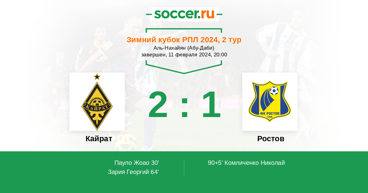 Протокол матча Кайрат против Ростов