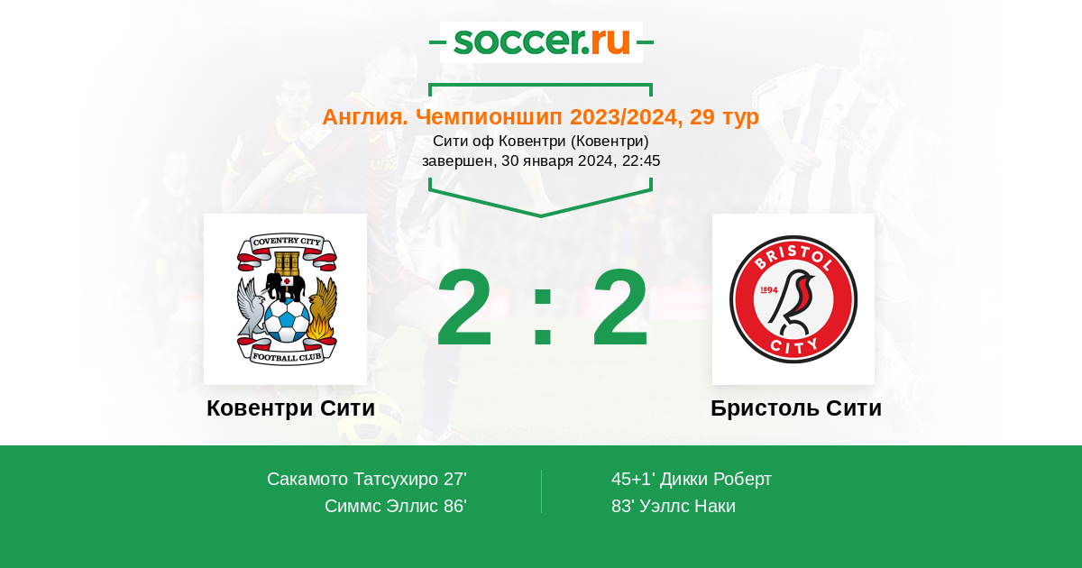 Протокол матча Ковентри Сити против Бристоль Сити