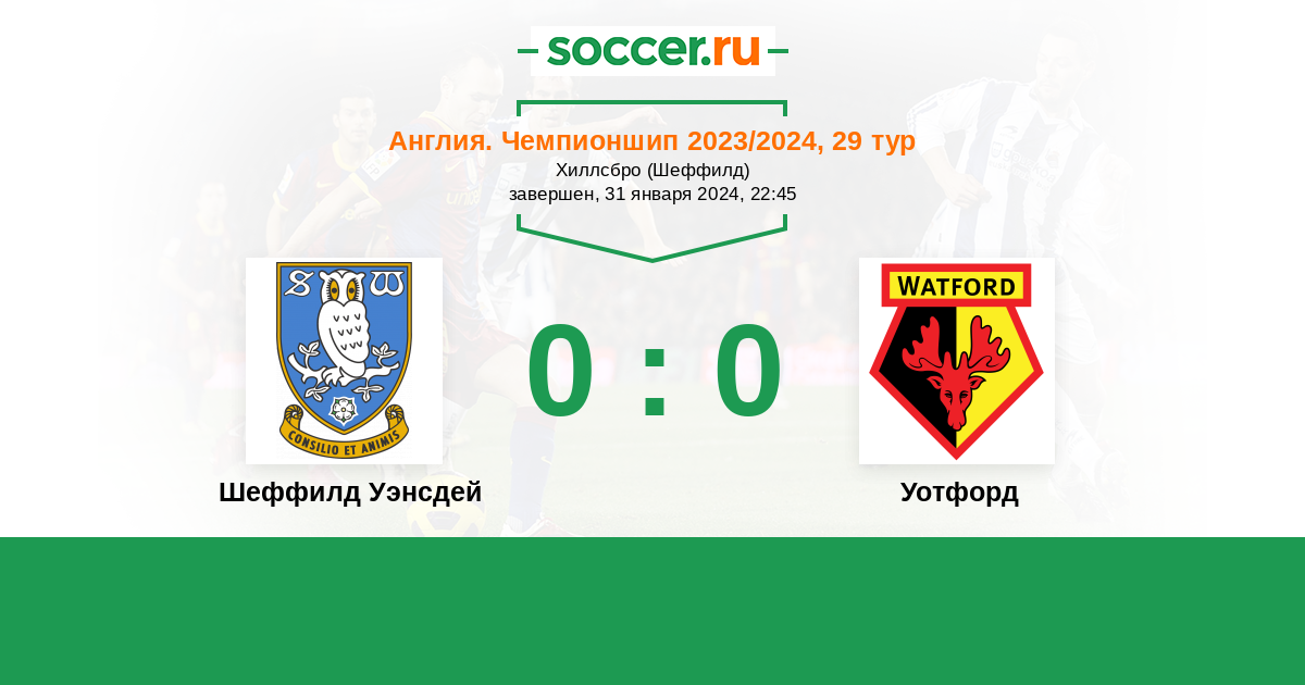 Протокол матча Шеффилд Уэнсдей против Уотфорд