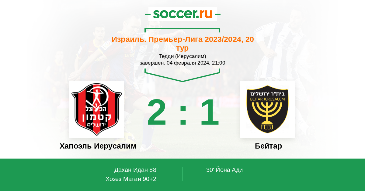Протокол матча Хапоэль Иерусалим против Бейтар