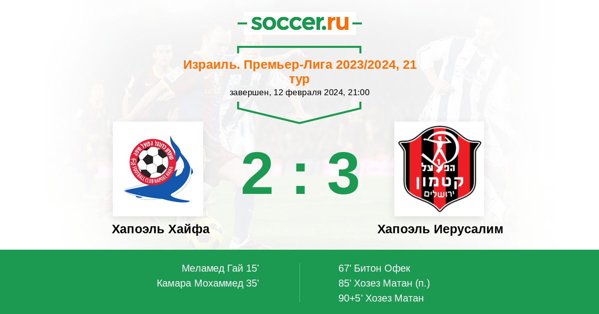 Протокол матча Хапоэль Хайфа против Хапоэль Иерусалим