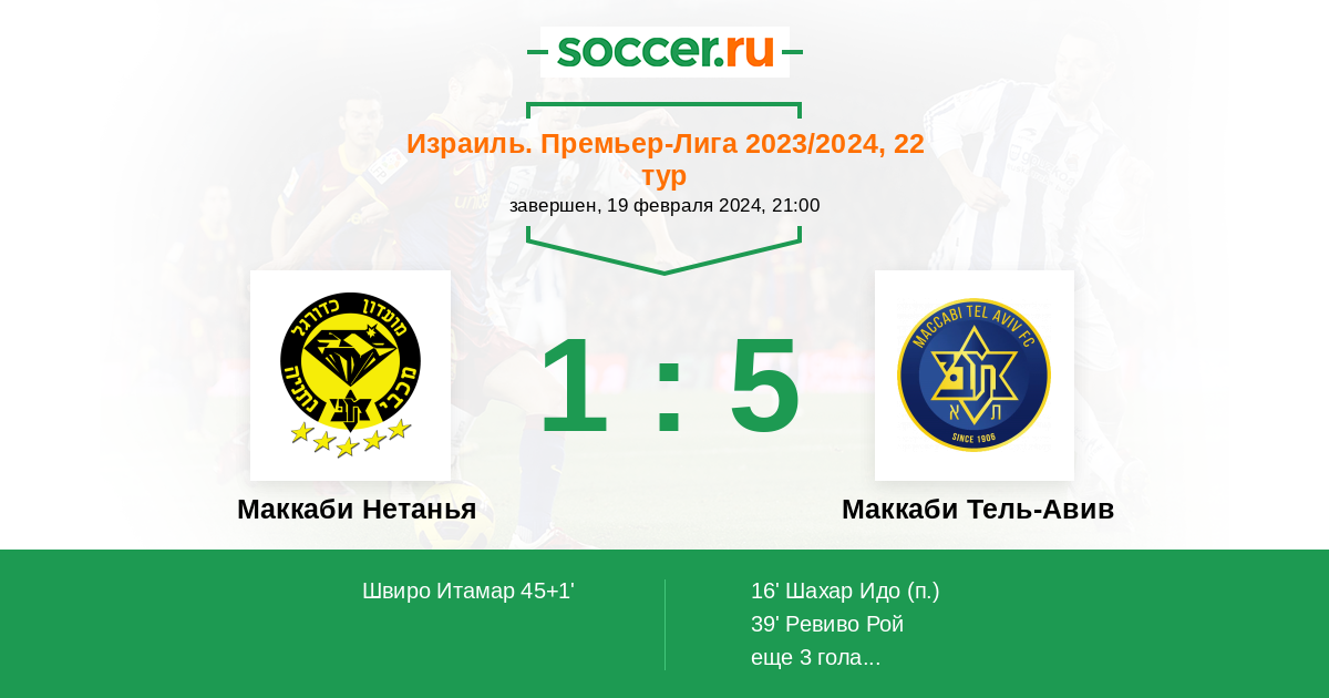 Протокол матча Маккаби Нетанья против Маккаби Тель-Авив