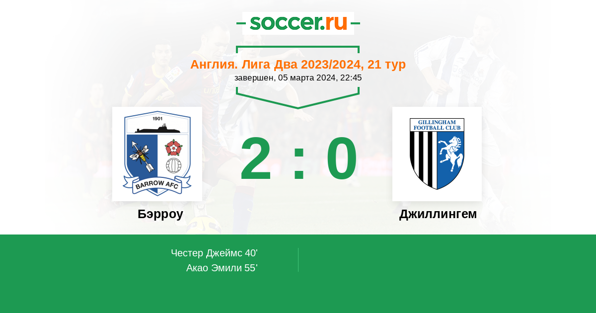 Протокол матча Бэрроу против Джиллингем