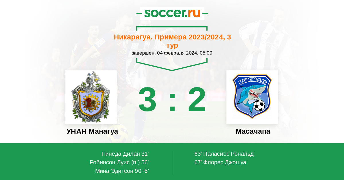 Протокол матча УНАН Манагуа против Масачапа