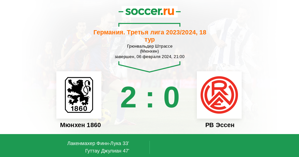 Протокол матча Мюнхен 1860 против РВ Эссен