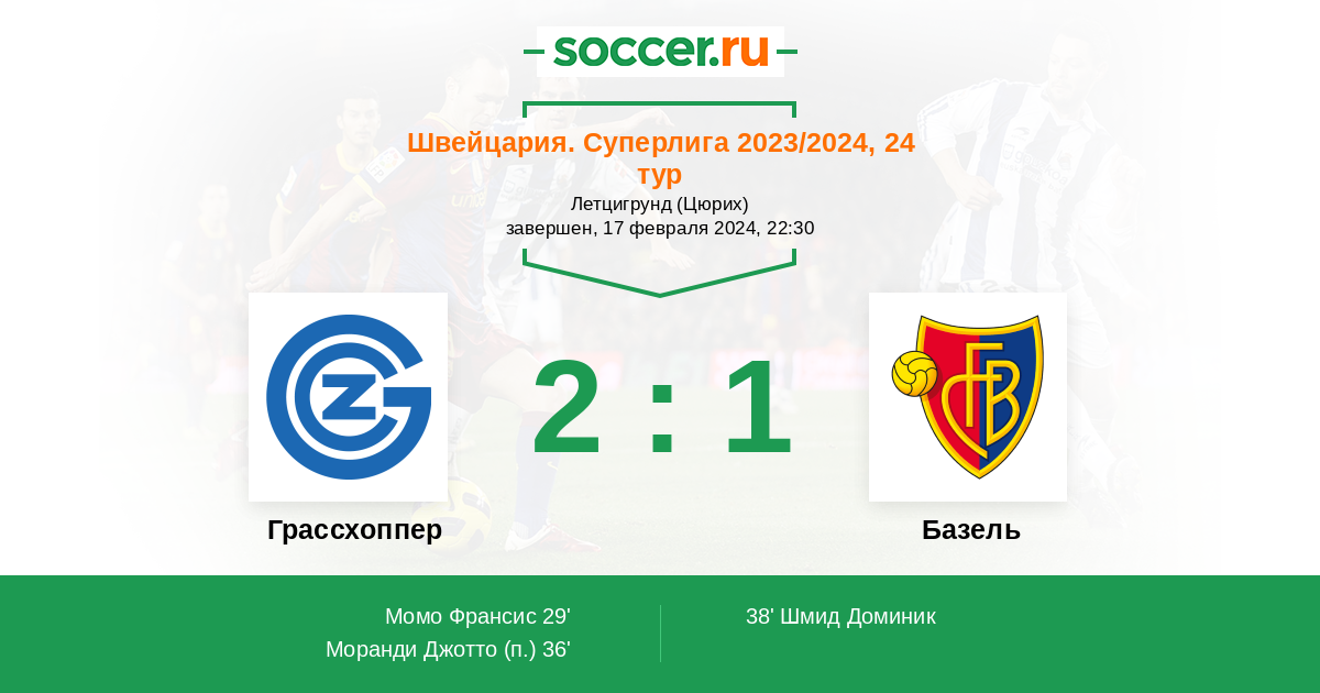 Протокол матча Грассхоппер против Базель