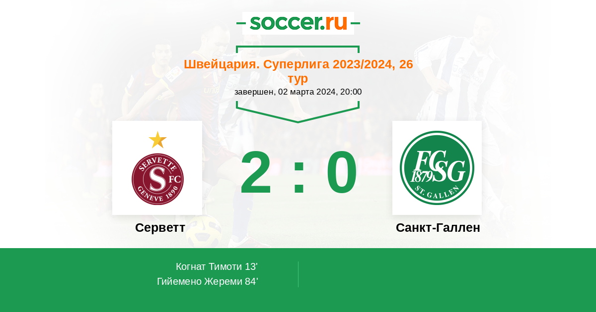 Протокол матча Серветт против Санкт-Галлен
