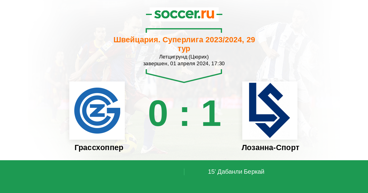 Протокол матча Грассхоппер против Лозанна-Спорт