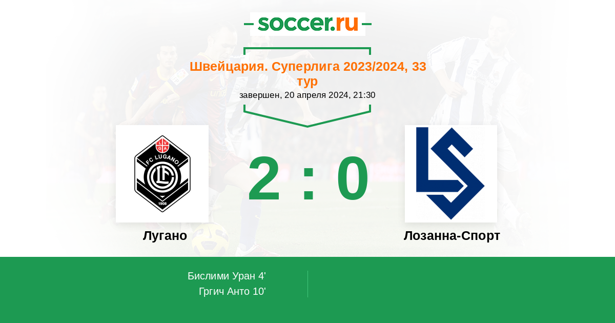 Протокол матча Лугано против Лозанна-Спорт