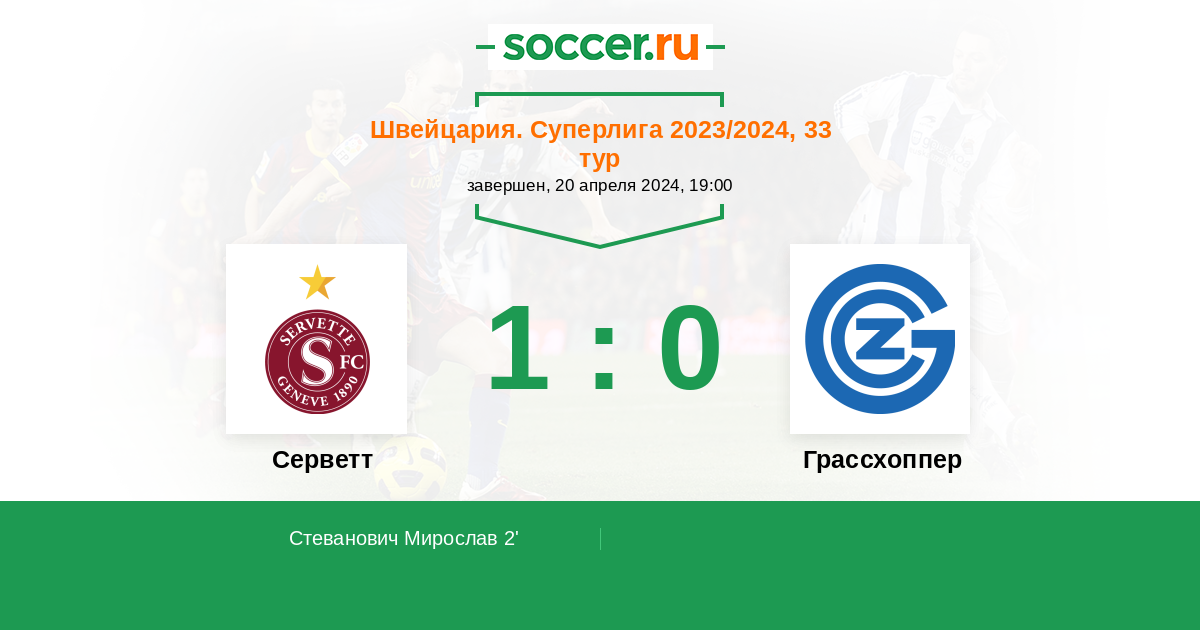 Протокол матча Серветт против Грассхоппер