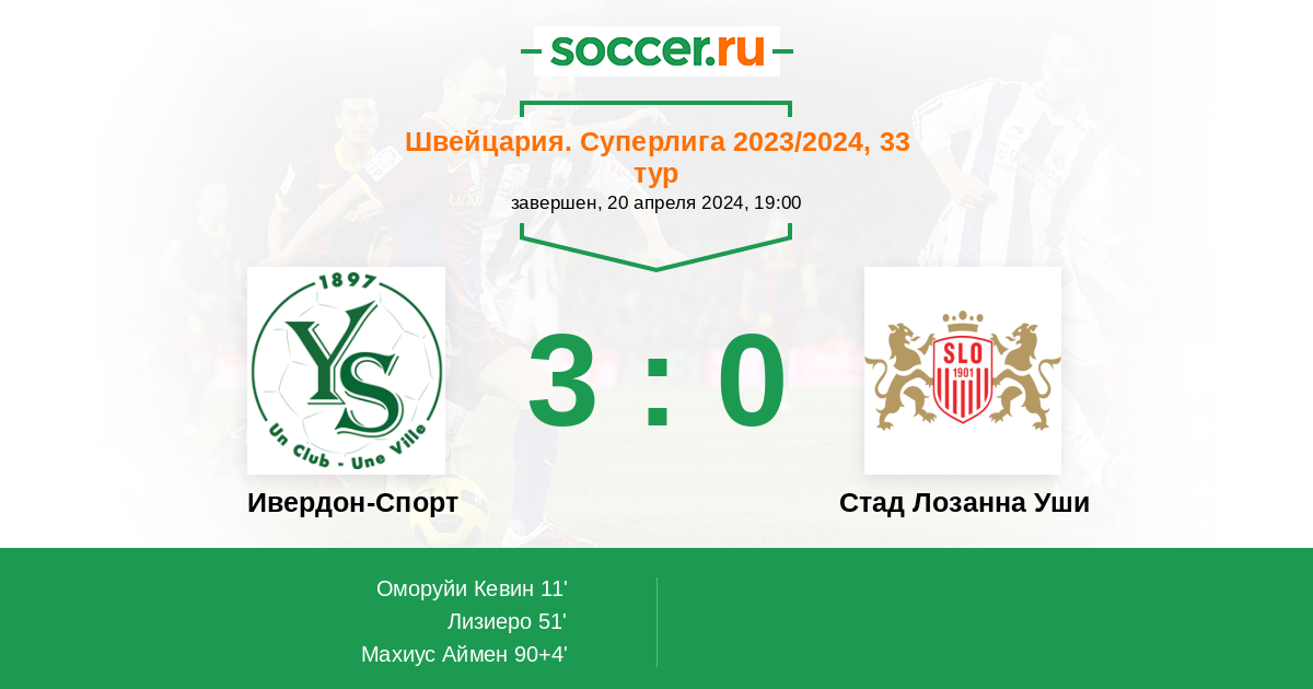 Протокол матча Ивердон-Спорт против Стад Лозанна Уши