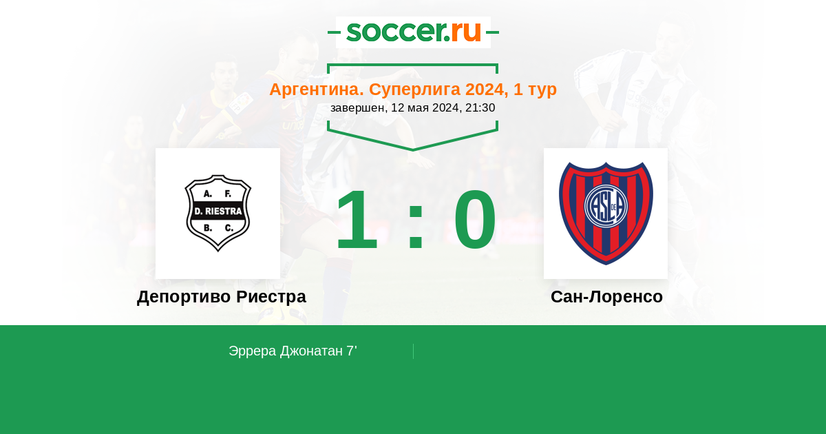 Протокол матча Депортиво Риестра против Сан-Лоренсо