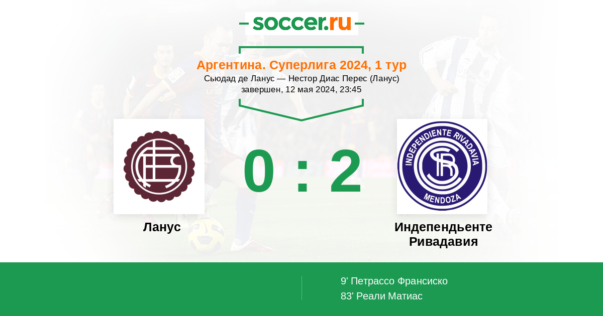Протокол матча Ланус против Индепендьенте Ривадавия