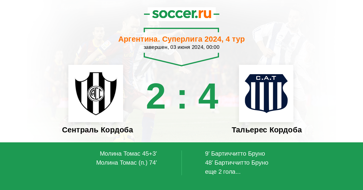 Протокол матча Сентраль Кордоба против Тальерес Кордоба