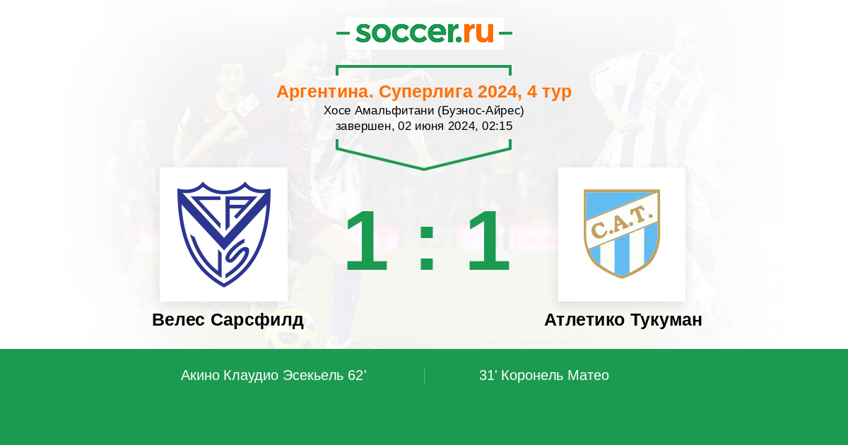 Протокол матча Велес Сарсфилд против Атлетико Тукуман