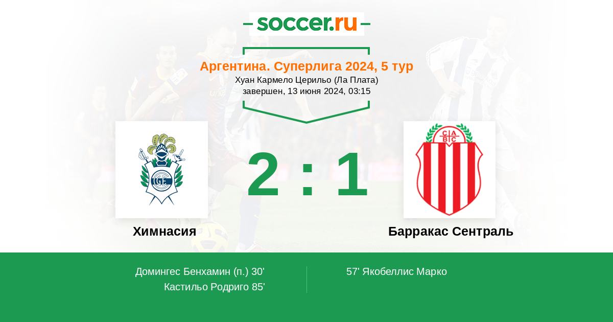 Протокол матча Химнасия против Барракас Сентраль