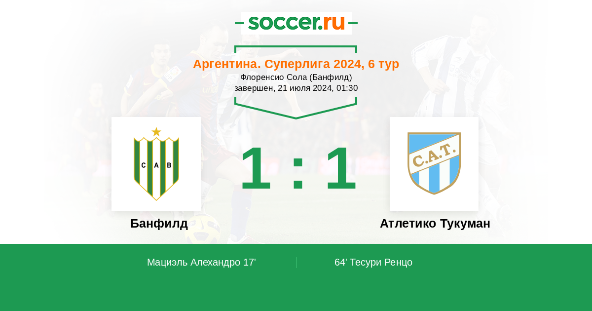 Протокол матча Банфилд против Атлетико Тукуман