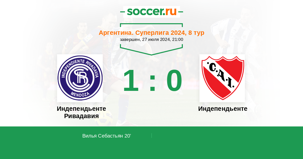 Протокол матча Индепендьенте Ривадавия против Индепендьенте