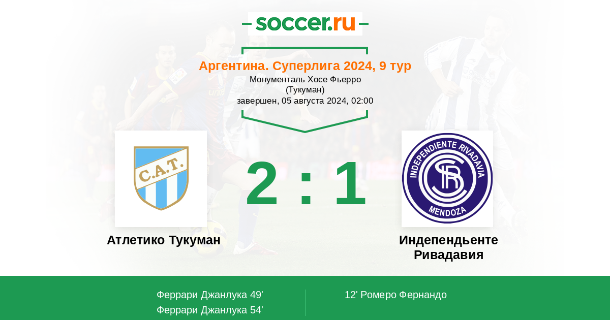 Протокол матча Атлетико Тукуман против Индепендьенте Ривадавия