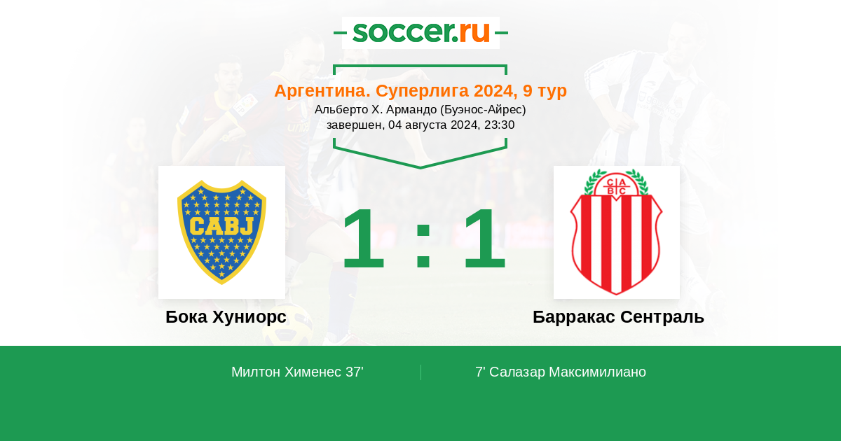 Протокол матча Бока Хуниорс против Барракас Сентраль