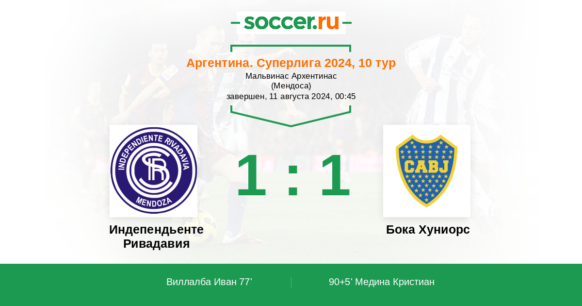 Протокол матча Индепендьенте Ривадавия против Бока Хуниорс