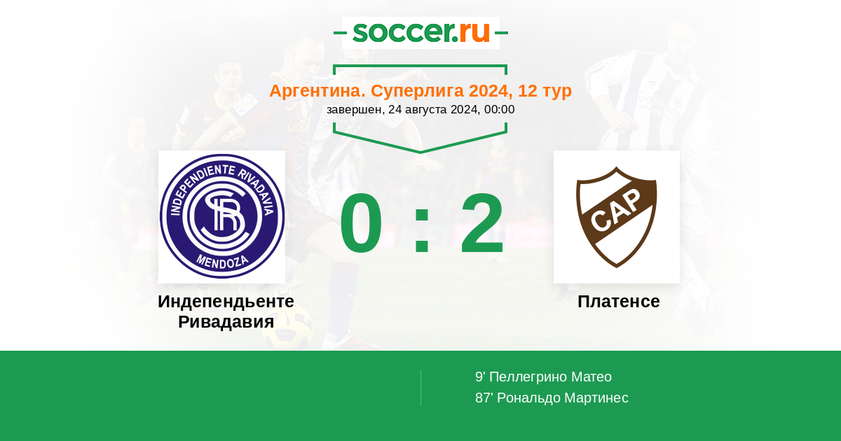 Протокол матча Индепендьенте Ривадавия против Платенсе