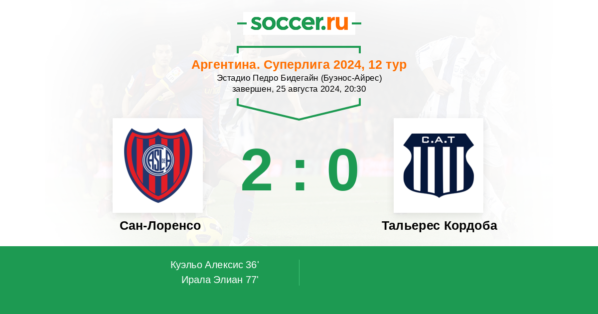 Протокол матча Сан-Лоренсо против Тальерес Кордоба