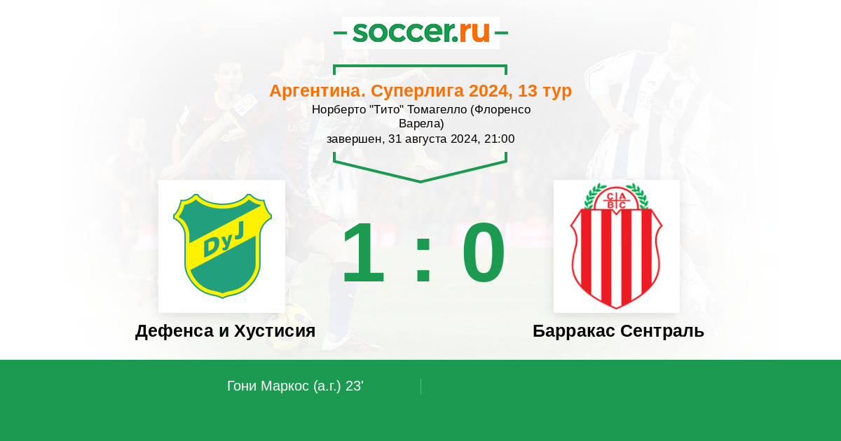Протокол матча Дефенса и Хустисия против Барракас Сентраль