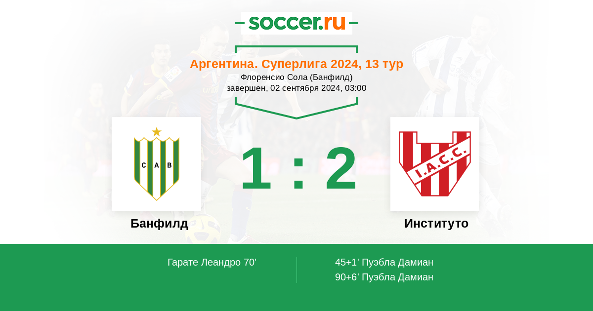 Протокол матча Банфилд против Институто