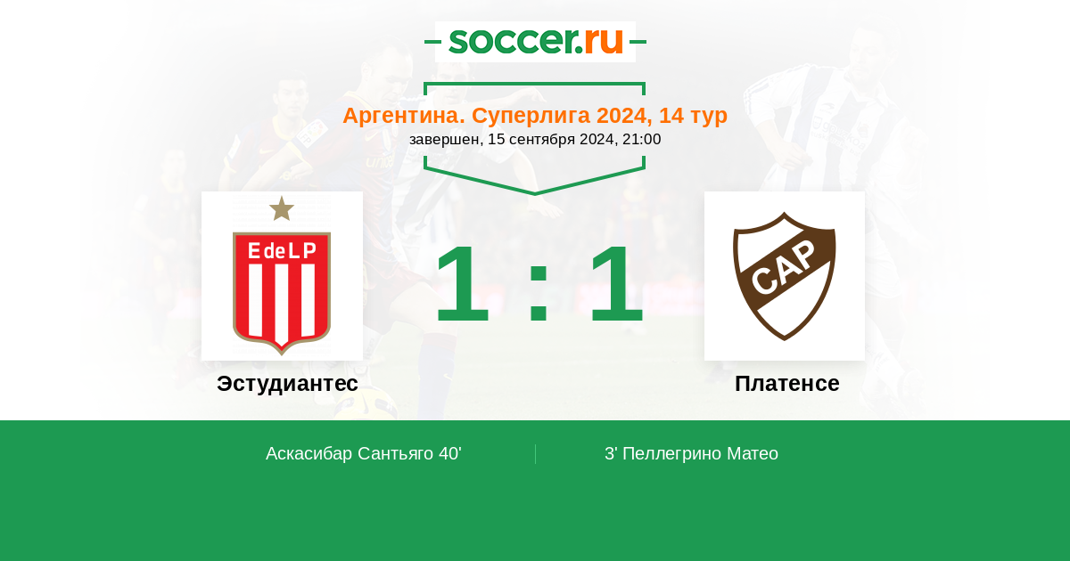 Протокол матча Эстудиантес против Платенсе