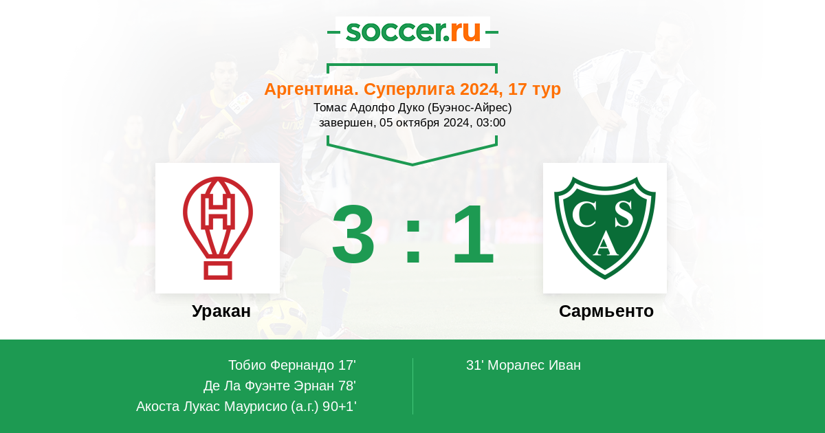 90+1' (3:1) Автогол Акоста Лукас Маурисио (42)