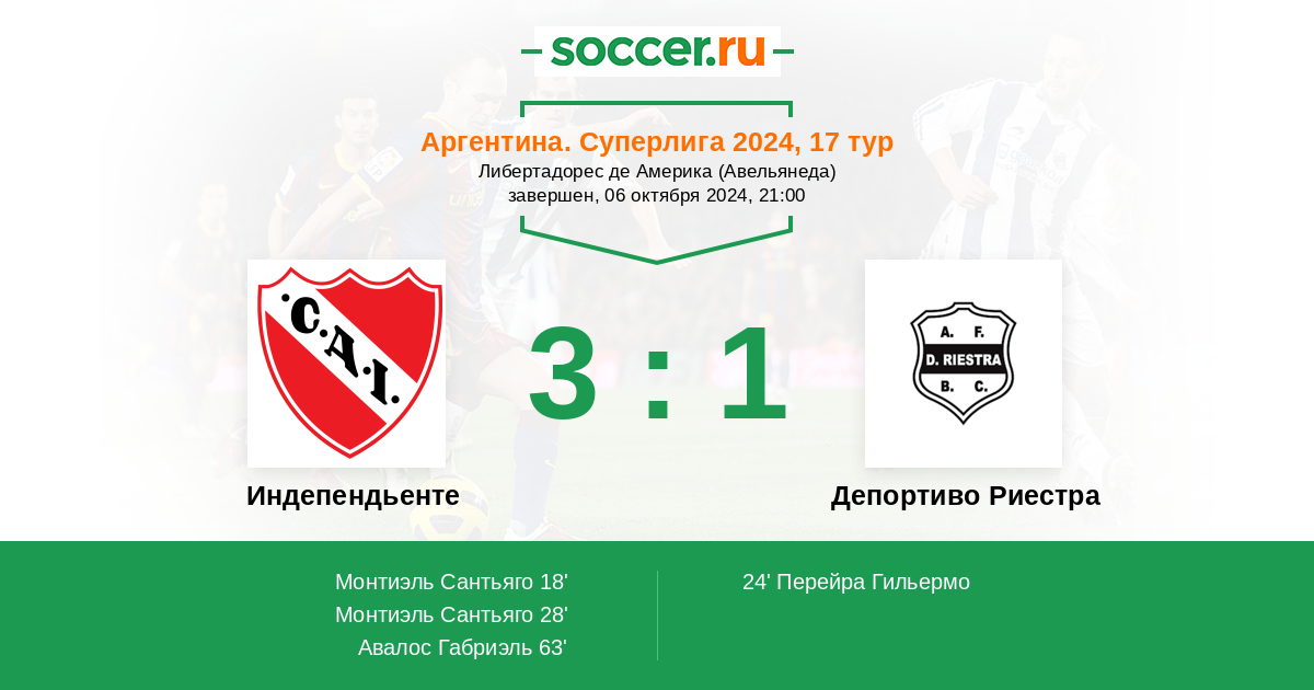Протокол матча Индепендьенте против Депортиво Риестра