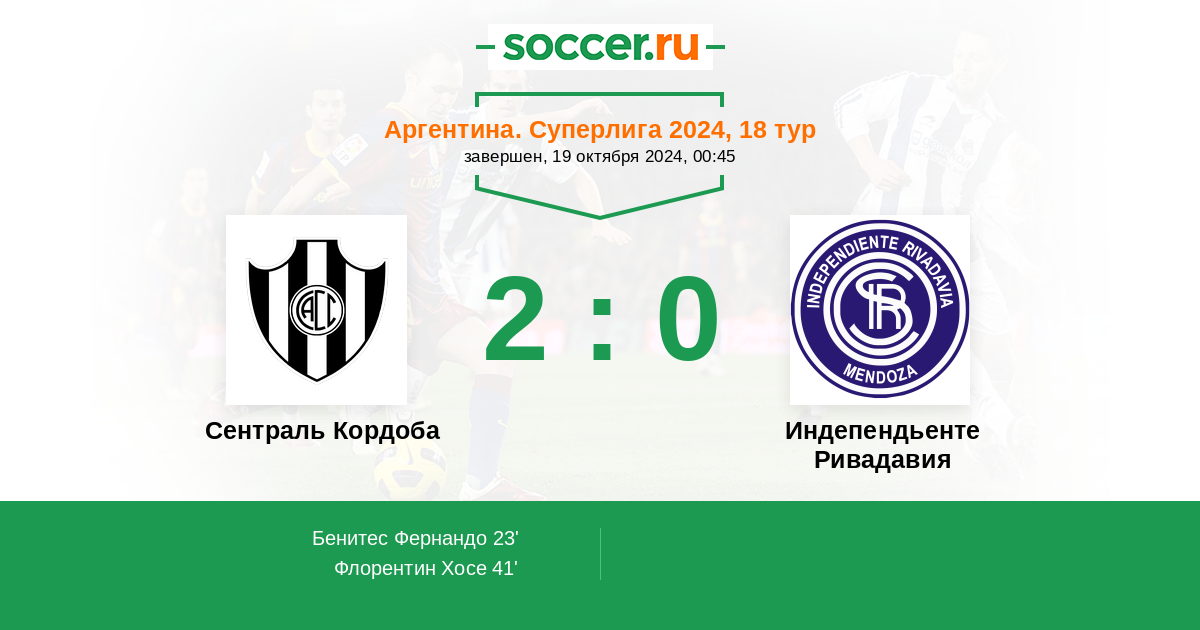 Протокол матча Сентраль Кордоба против Индепендьенте Ривадавия