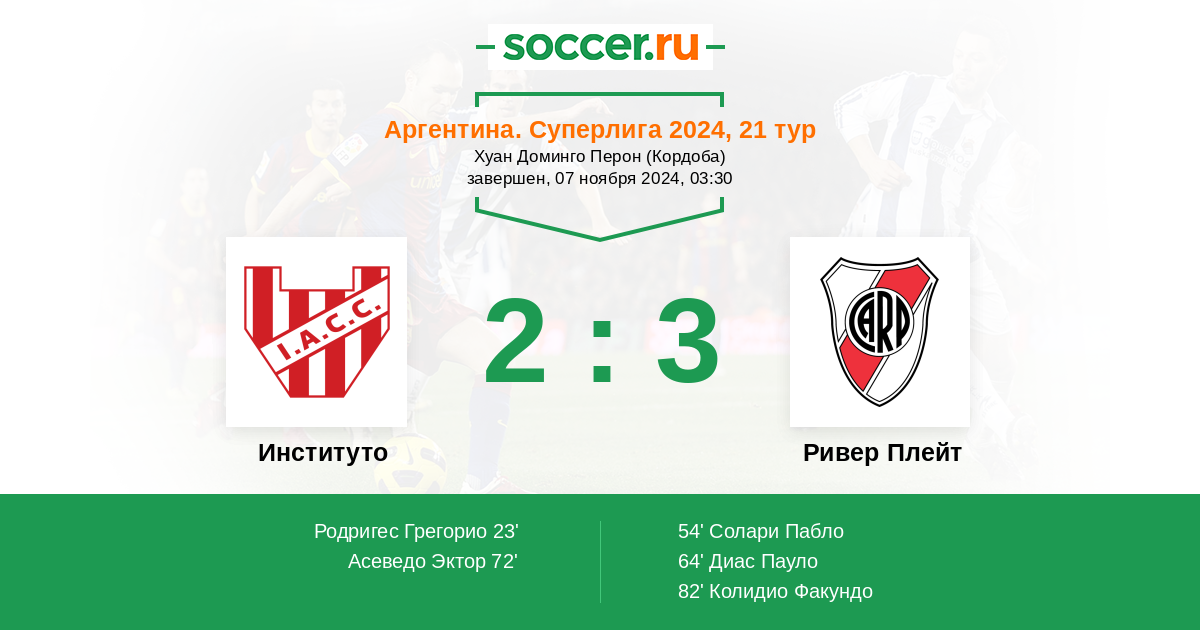 Протокол матча Институто против Ривер Плейт
