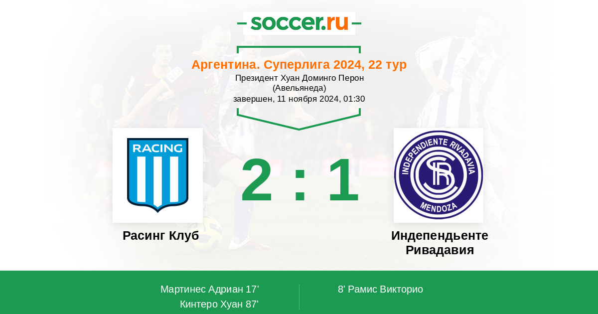 Протокол матча Расинг Клуб против Индепендьенте Ривадавия