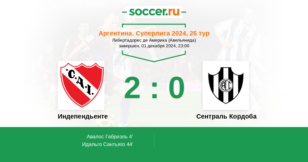 Протокол матча Индепендьенте против Сентраль Кордоба