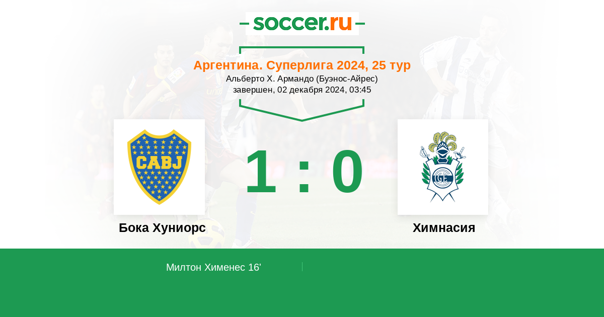 Протокол матча Бока Хуниорс против Химнасия
