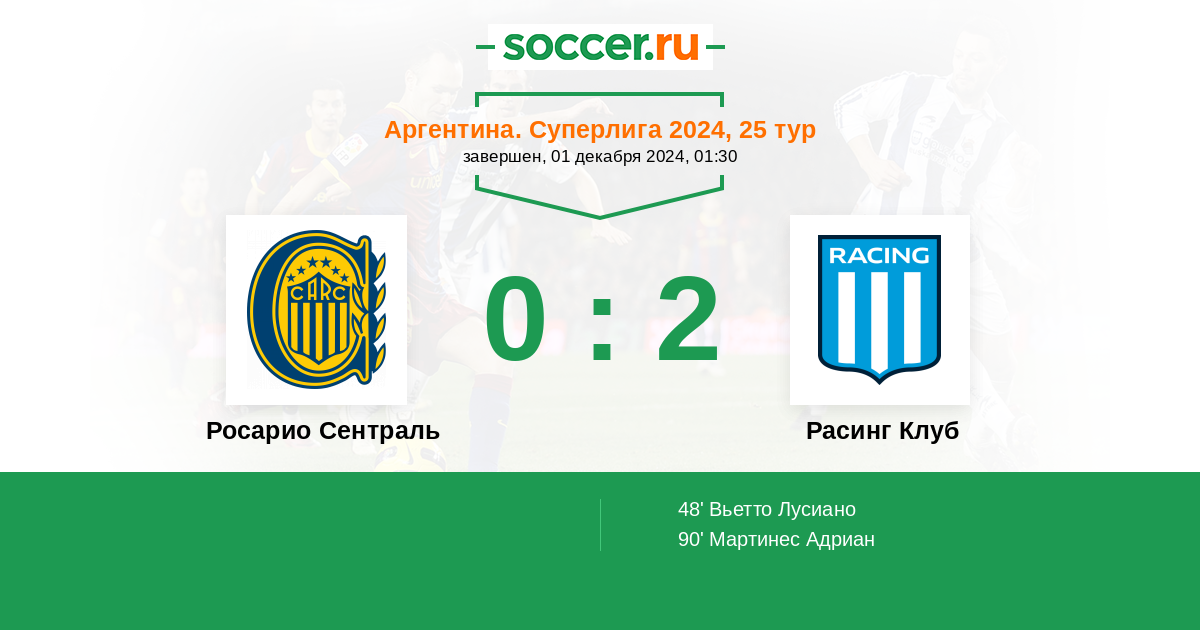 Протокол матча Росарио Сентраль против Расинг Клуб