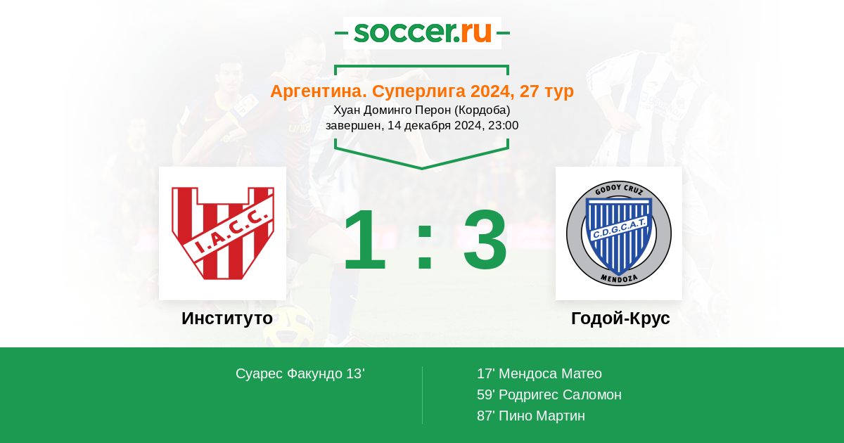 13' (1:0) Суарес Факундо (9) (Лодико Гастон (19))