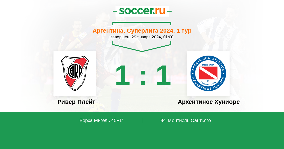 Протокол матча Ривер Плейт против Архентинос Хуниорс