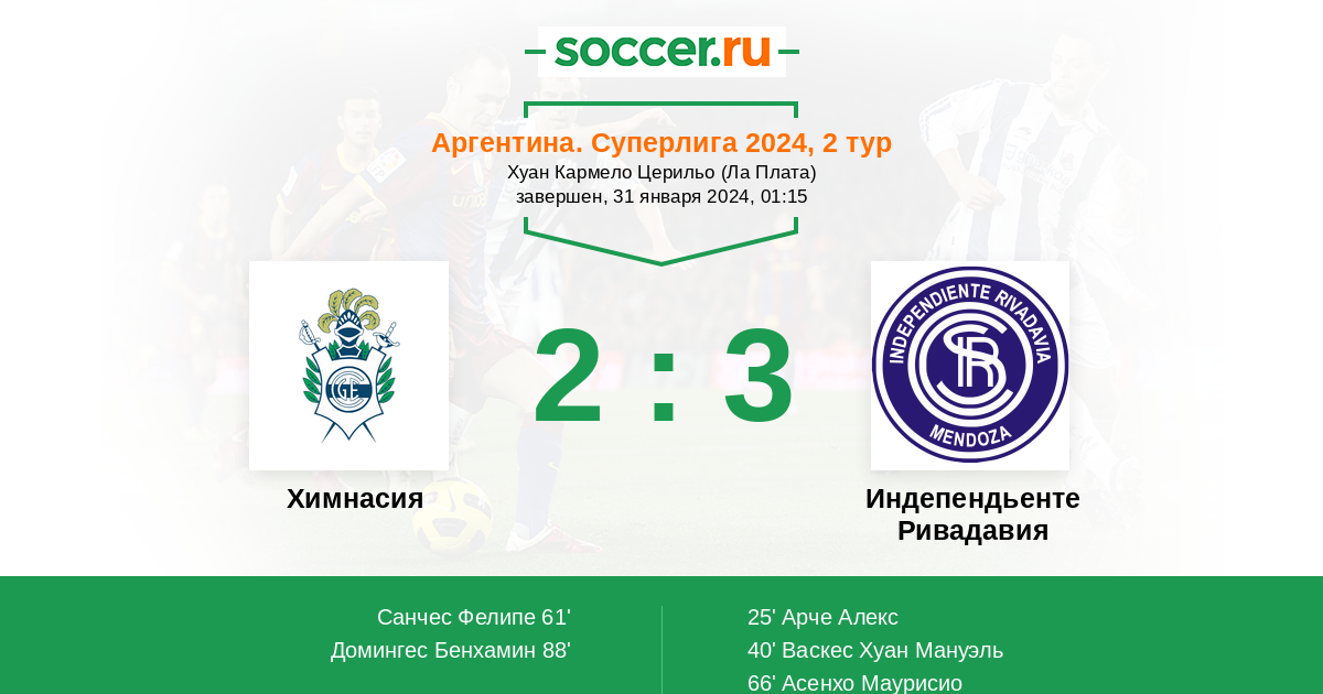 Протокол матча Химнасия против Индепендьенте Ривадавия