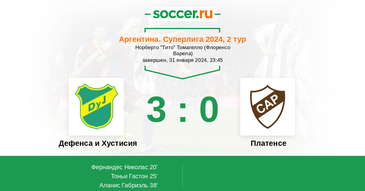 Протокол матча Дефенса и Хустисия против Платенсе