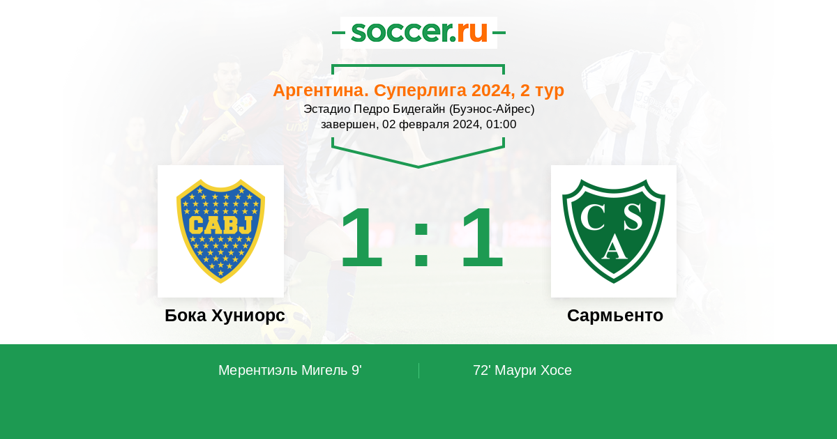 Протокол матча Бока Хуниорс против Сармьенто