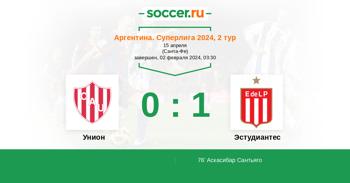 76' (0:1) Аскасибар Сантьяго (5) (Меза Эрик (20))