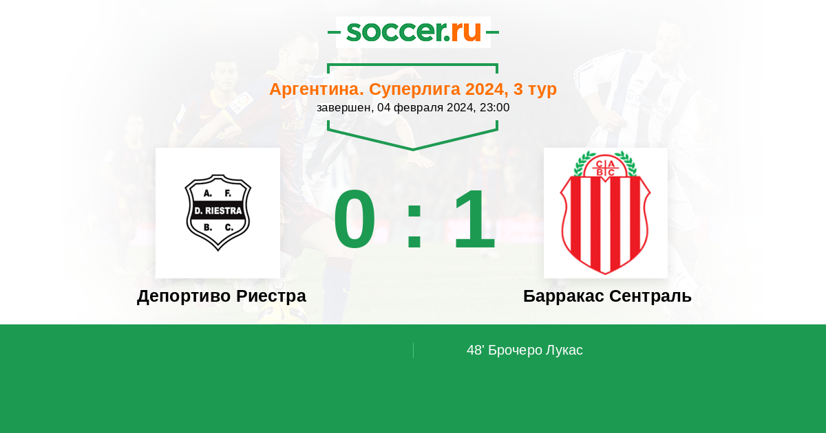 Протокол матча Депортиво Риестра против Барракас Сентраль