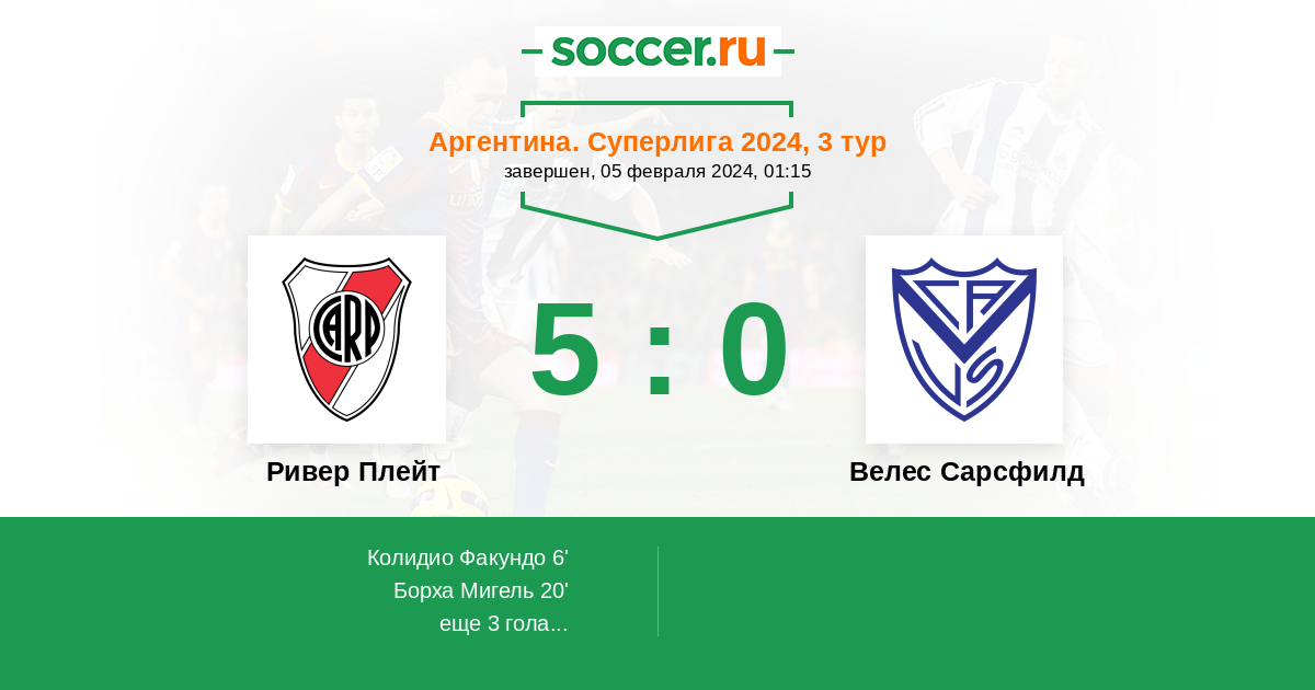 Протокол матча Ривер Плейт против Велес Сарсфилд